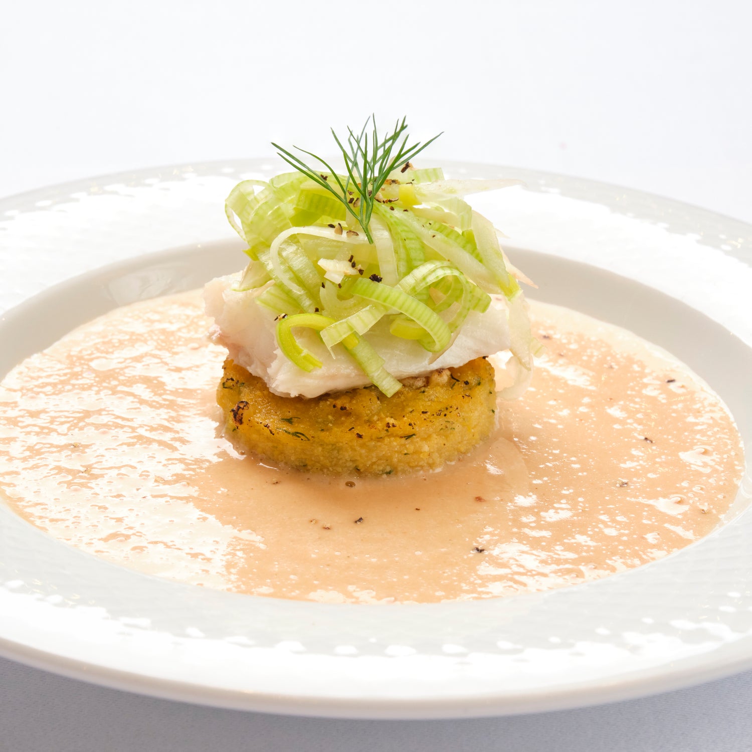 Fiskefumé - Hvid fisk - Polenta - Porre - Fransk baguette